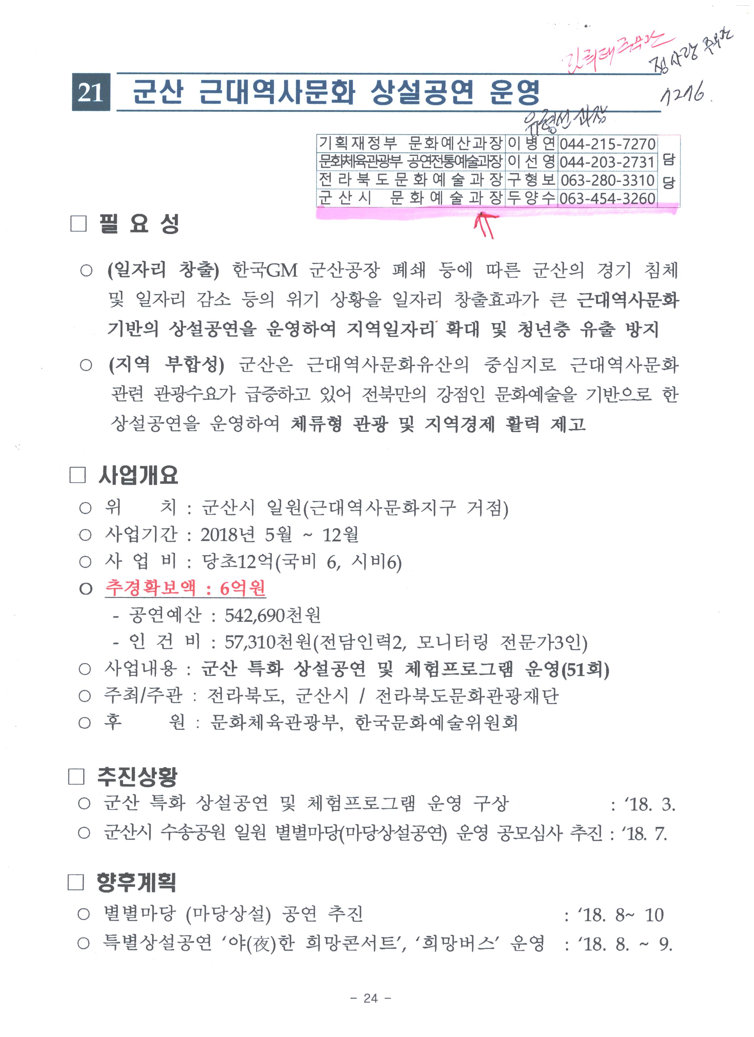 실제 민원인이 전북문화관광재단에서 집행하는 2018년도 군산시 추경 근대역사 상설공연 6억원