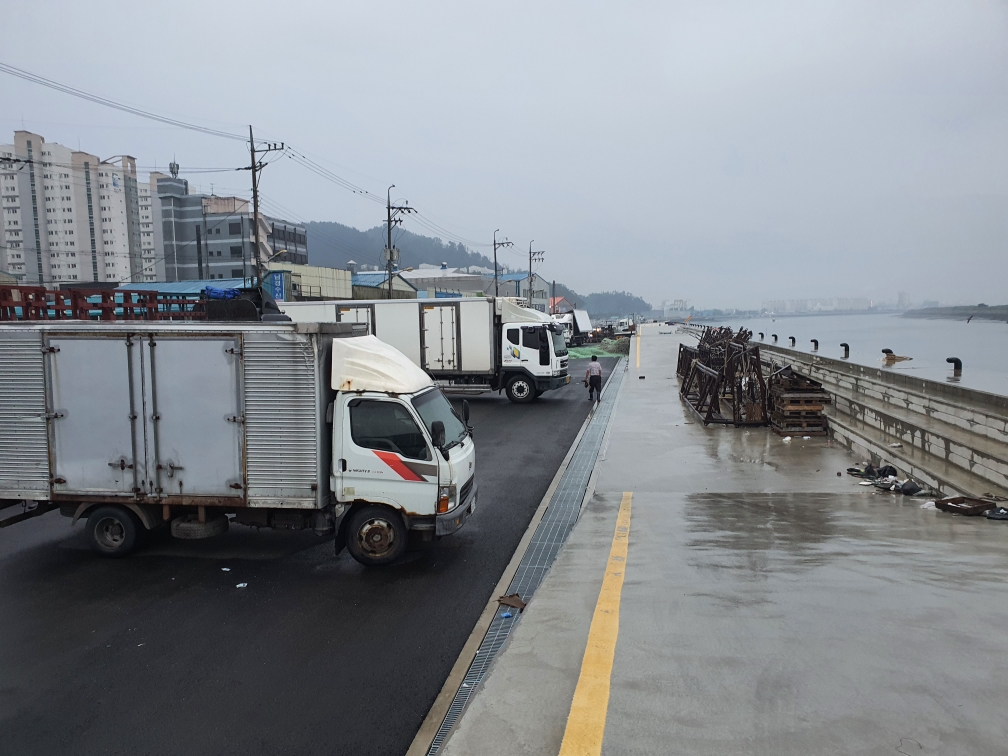 새벽에 중매인들 어민들이 많이 옵니다. 서로 사고 없도록 조치 바랍니다.