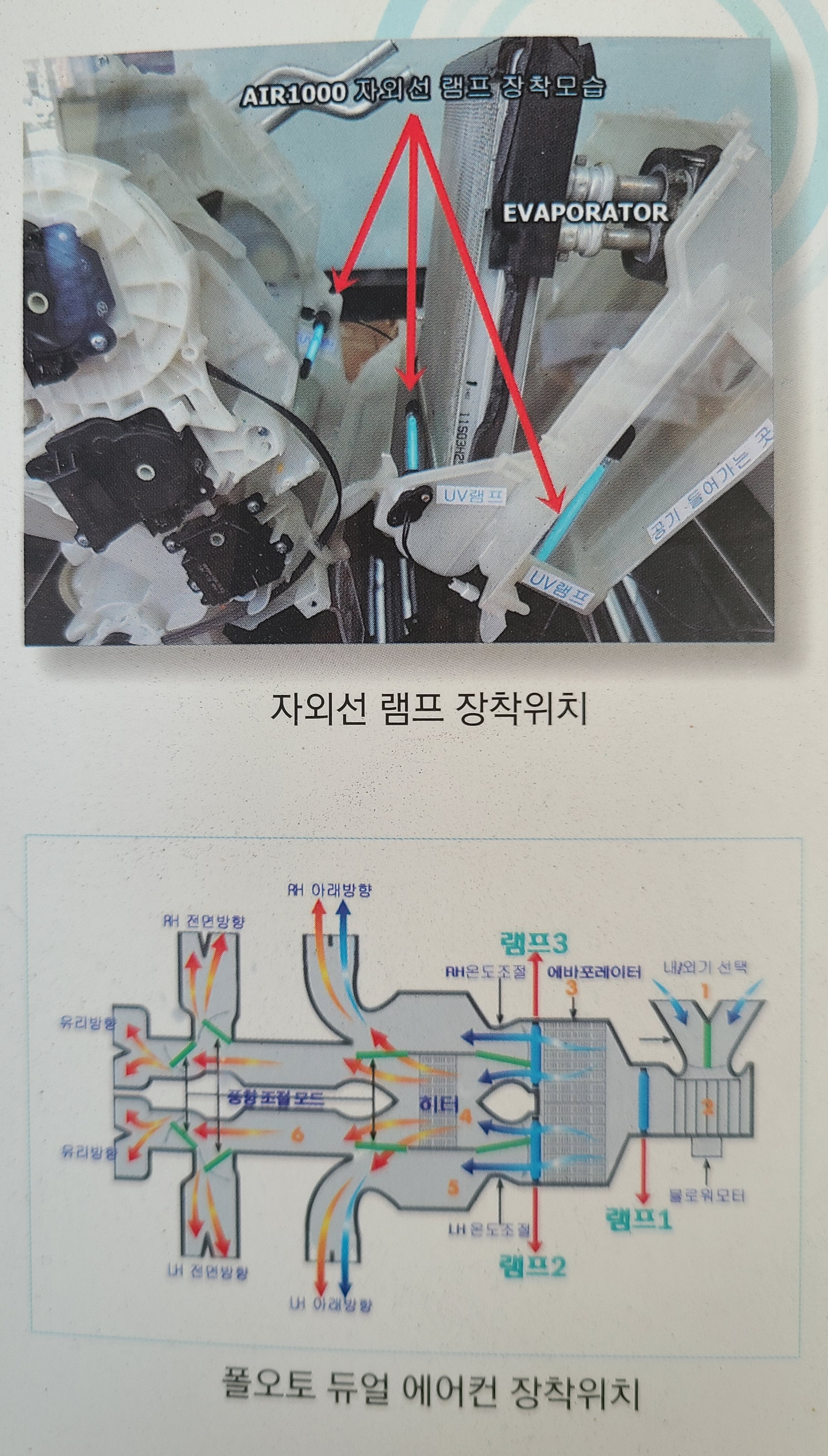 UV살균, 정화시스템은 공조기내부 오염시 히터나 에어컨 에바포레이터를 많은비용을들여 교체하는 일반방식과 주기적인으로 비용을들여 세척크리닝하는 방식이 아닌 공조기내부에 UV살균램프를 장착하고 송풍모터를 자체배터리로 자동으로 구동시켜 차실내부공기정화까지 이루어 지는 시스템으로 한번 장착으로 최저 5년이상 10년까지 사용가능한 내구성과 교체나 크리닝등의 추가비용이없어 높은 경제성과 가성비를 가지고있습니다. 차량 노후로인한 교체시 이전장착사용까지 가능한 시스템입니다.