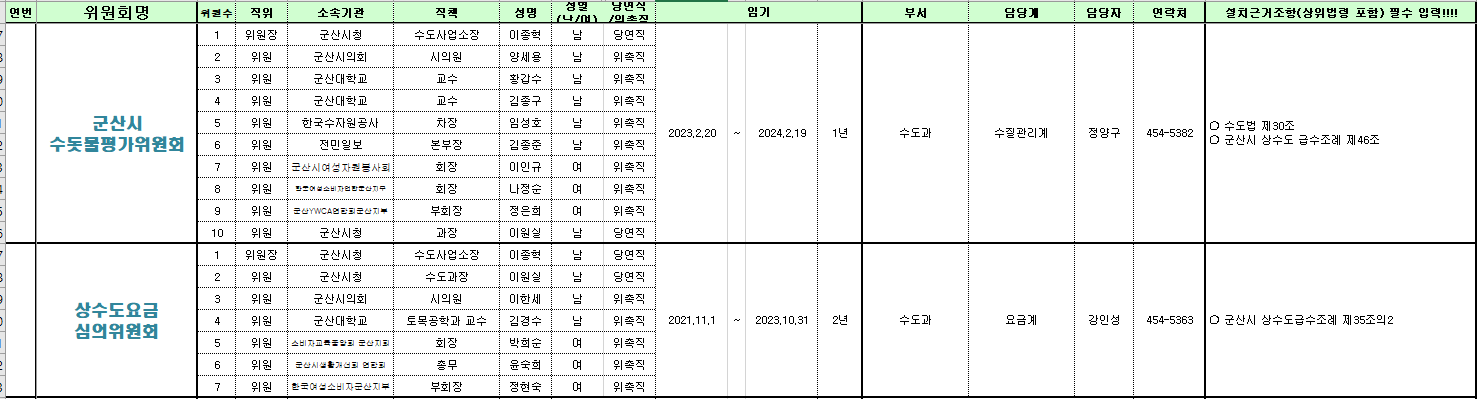 행정지원과 자치행정계에서 제작한 "위원회 명단공개"저작물은