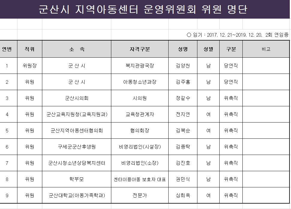 군산시청 행정지원과 자치행정계에서 제작한 "위원회 명단공개"저작물은
