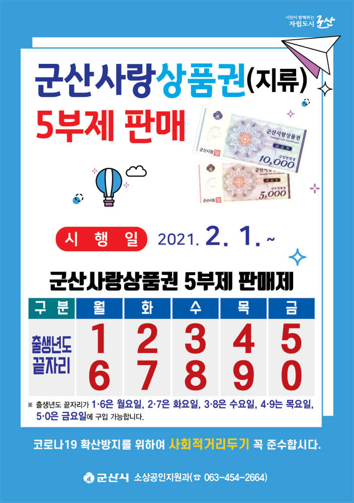 | 28 | 군산사랑상품권(지류) 2월 1일부터 5부제 판매합니다!! |