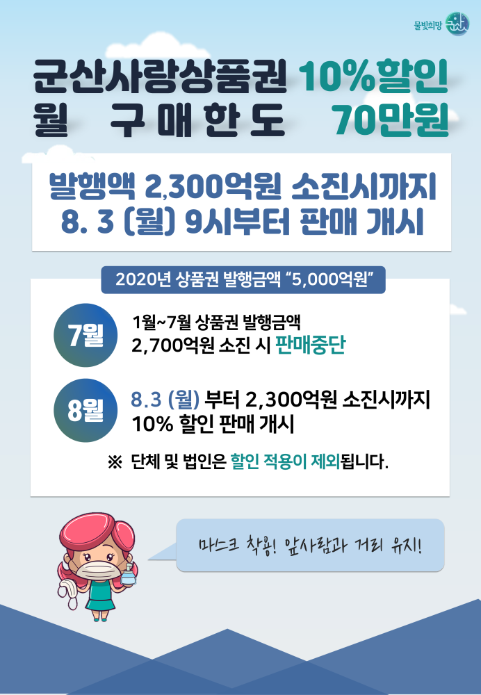 | 19 | 8.3 (월)부터 군산사랑상품권 10% 할인 판매 안내 |