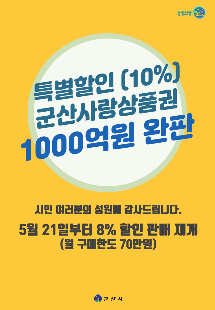 | 14 | 특별할인(10%) 군산사랑상품권 1000억원 완판 |