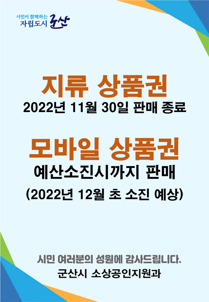 일자리경제과 유통화폐계에서 제작한 "상품권 공지사항"저작물은