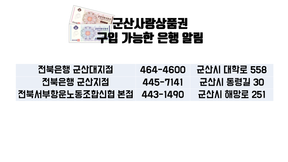 | 97 | 군산사랑상품권 (종이류) 구입 가능한 은행 알림 (21.09.08. 13시기준) |
