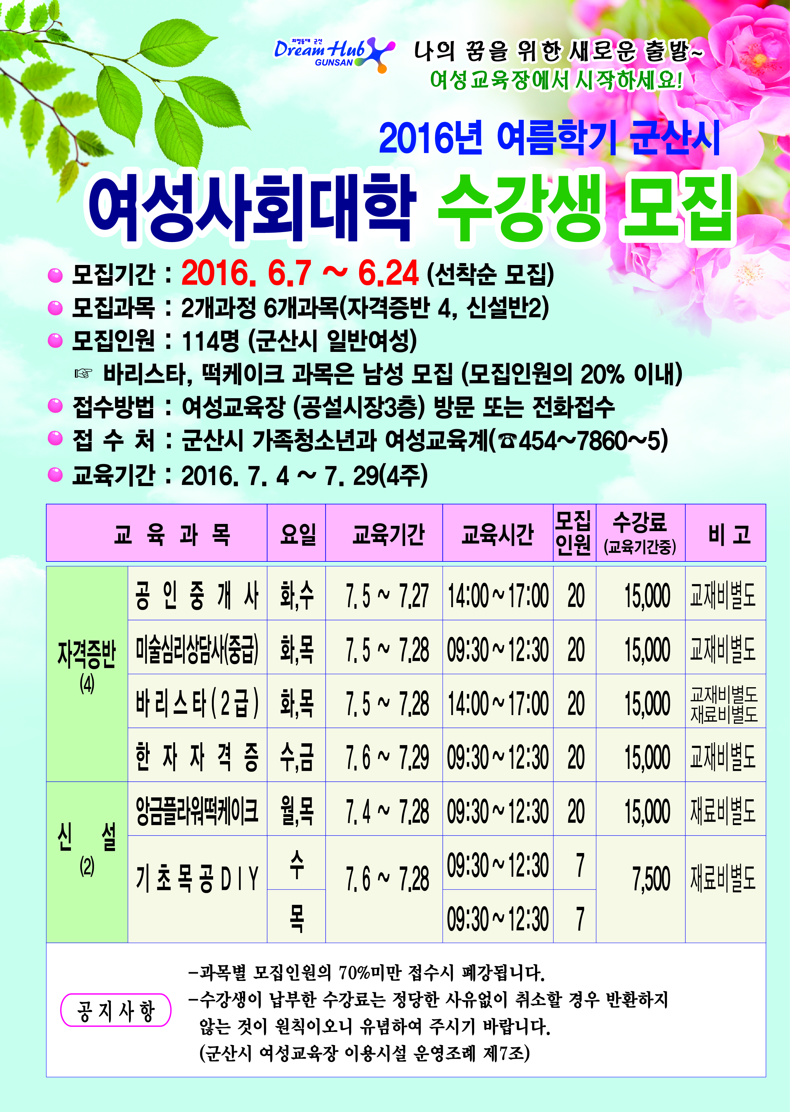 10 | 2016년 여름학기 여성사회대학 수강생 모집 |