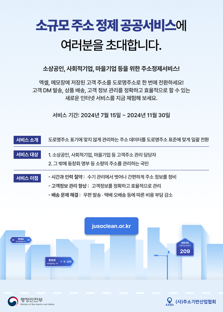 - 소상공인, 사회적기업, 마을기업 등 고객주소 관리 담당자