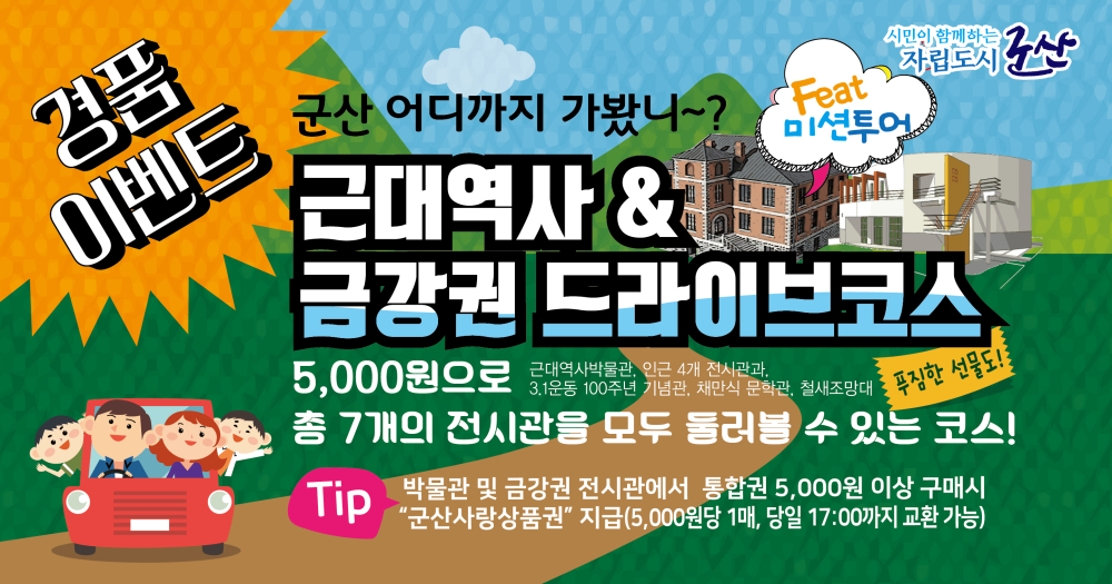 또한 금강을 끼고 위치한 각 전시장 방문은 멋진 드라이브 코스로도 가족단위 관람객과 연인들에게 잊지못할 군산여행의 기억을 심어줄것입니다.