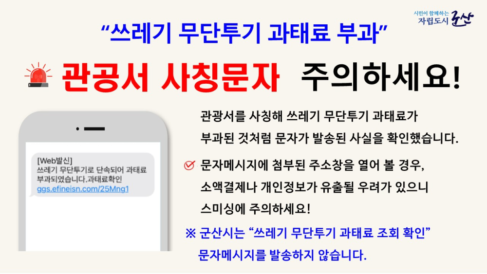 | 47 | ※쓰레기 무단투기 과태료 부과 사칭문자 주의하세요!!※ |