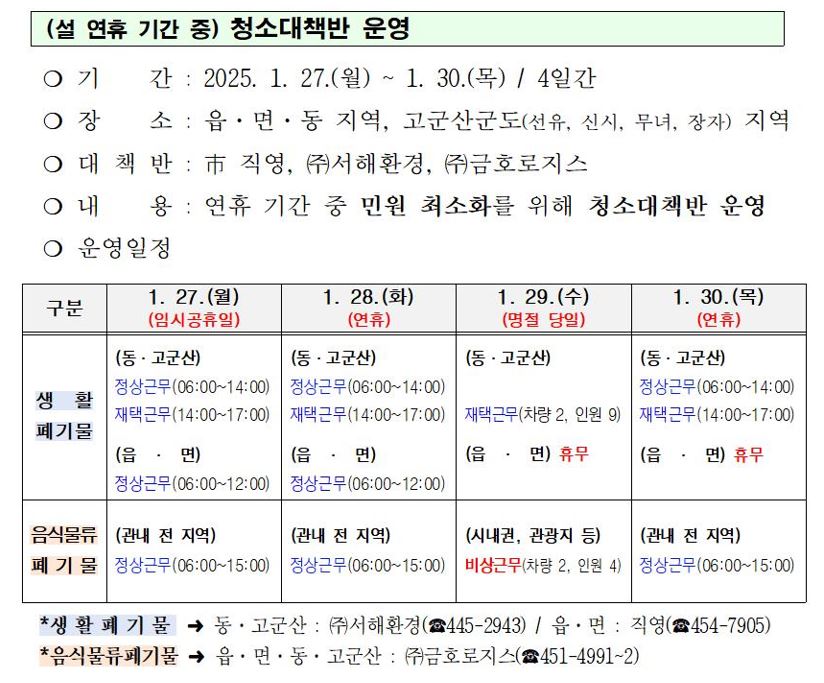 | 48 | 2025년 설 연휴 기간 중(1.27.~1.30.) 쓰레기 수거 일정 알림 |