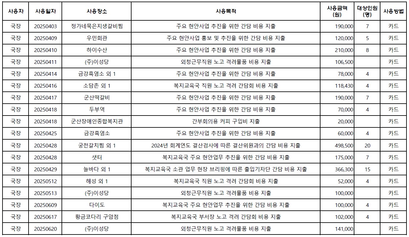2025. 2분기 복지교육국 업무추진비 집행내역을 공개합니다.
