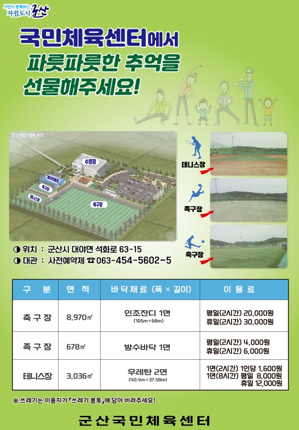 | 1994 | 군산 국민체육센터 실외체육시설 이용 안내 |