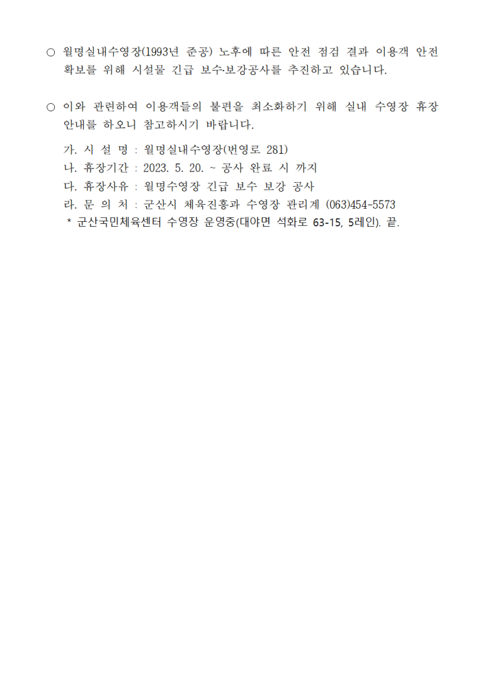 | 1986 | 월명 실내 수영장 휴장 안내 |