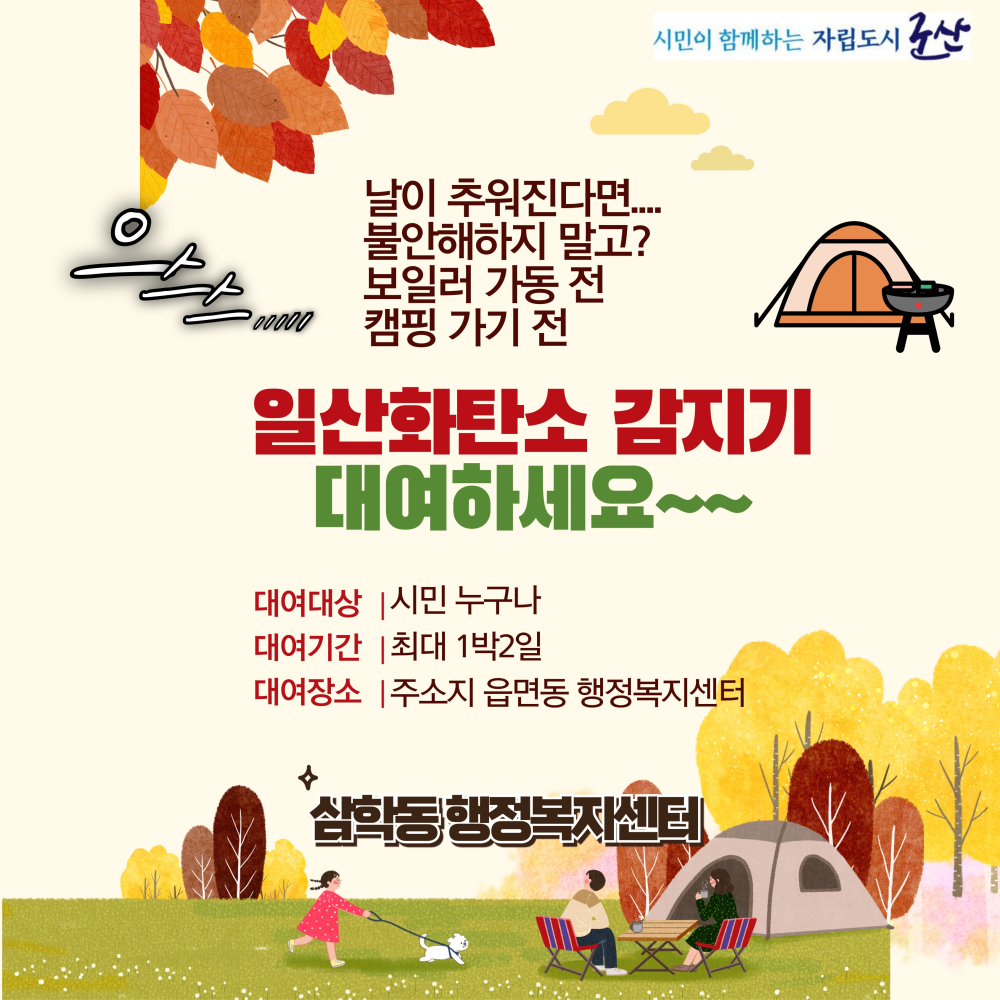 | 2707 | 보일러 가동전? 캠핑가기 전? 일산화탄소 감지기 대여하세요~ |