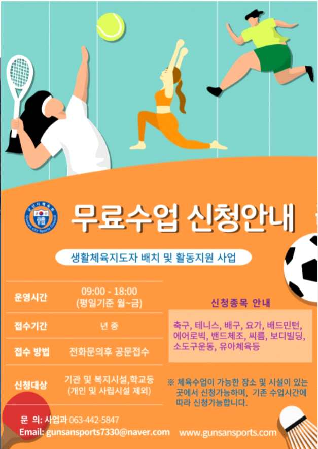 | 2538 | 생활체육지도자 무료수업 신청 안내 |