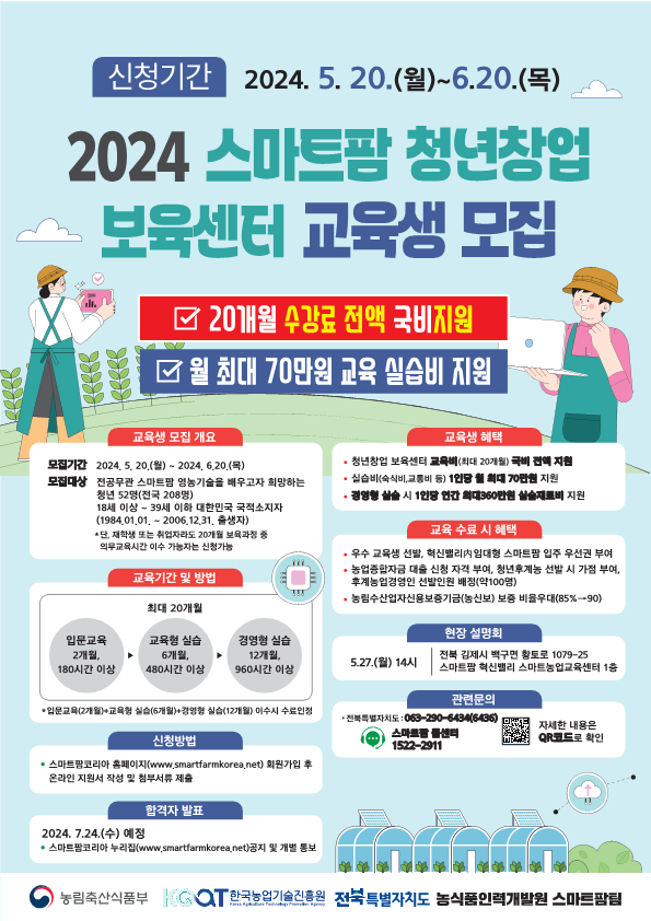 | 2501 | 2024년 스마트팜 청년창업 보육센터 교육생 모집 |