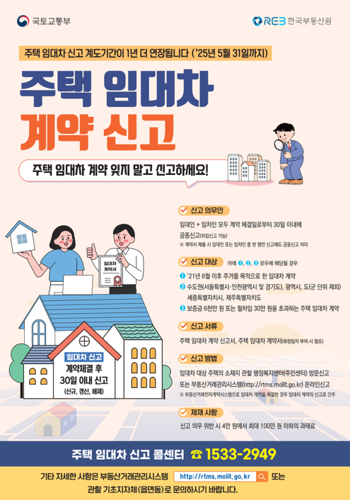 | 2485 | 주택 임대차 신고제, 계도기간 1년 연장 안내 |