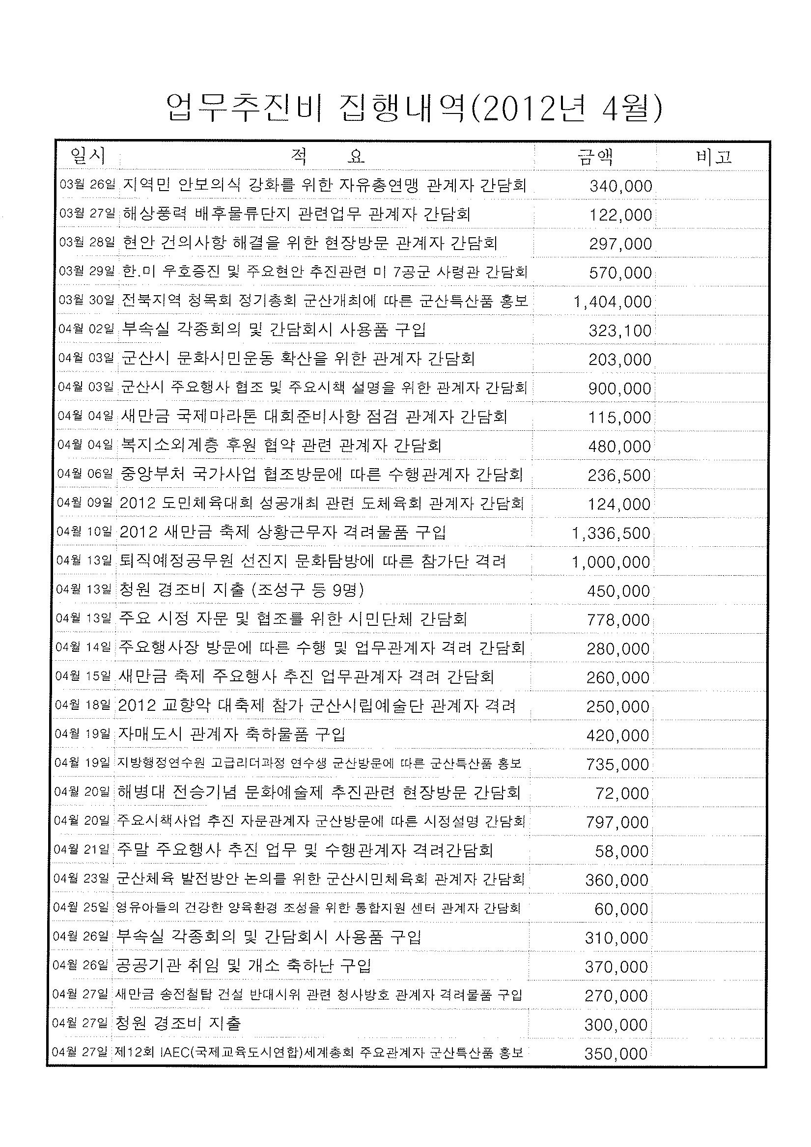 14 군산시장 업무추진비 (3월중) 다운받기 총무과 12.04.09 1394