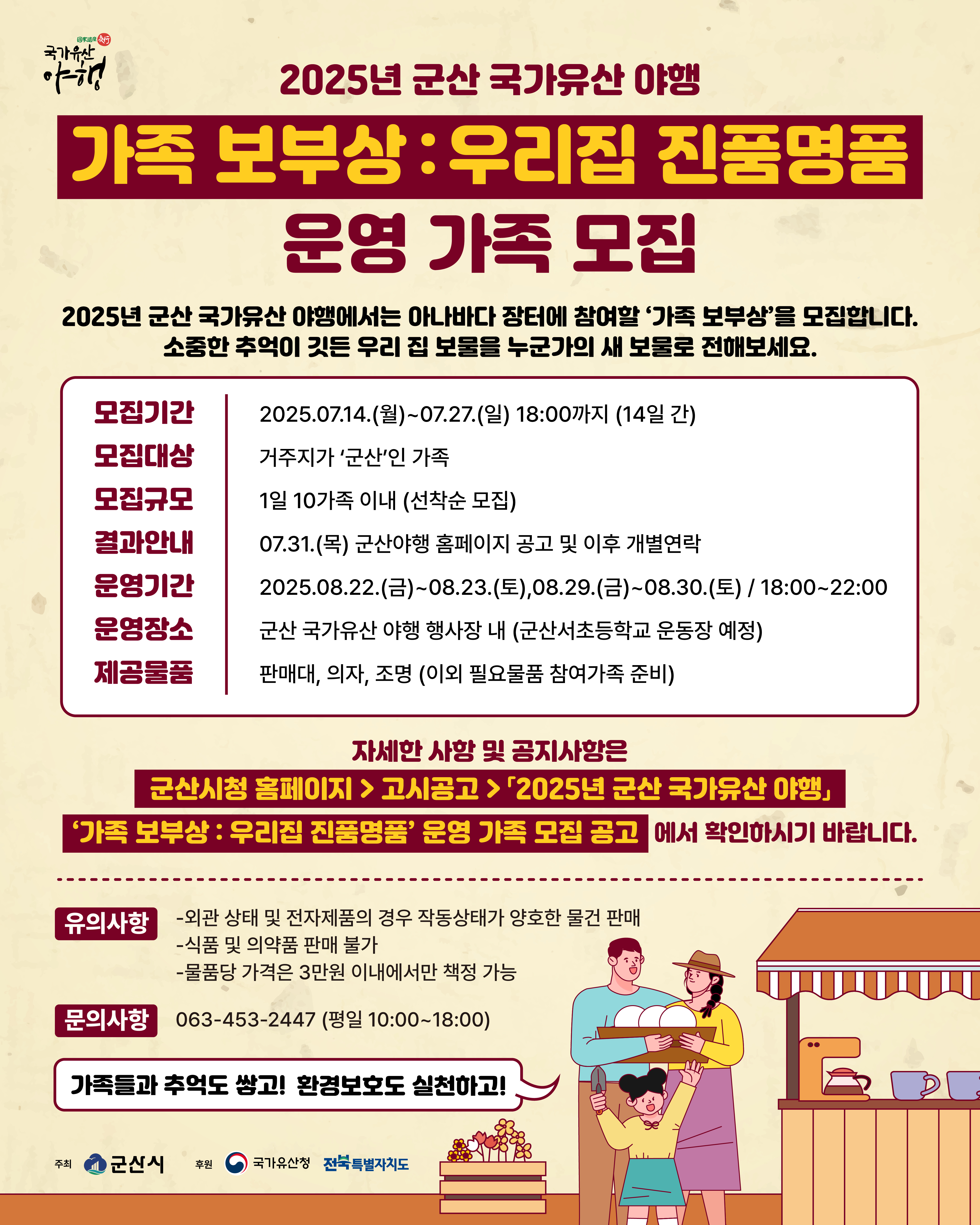 「2025년 군산 국가유산 야행」에서 나에게는 보물이지만 새 주인을 찾는 아나바다 장터를 운영할 ‘가족 보부상’을 모집합니다.