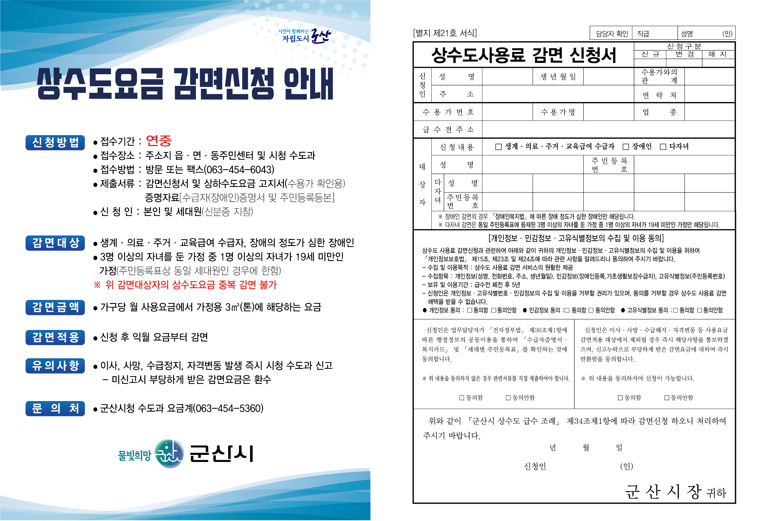 상수도사용료감면신청안내문및신청서(홍보용).jpg (파일크기: 1220 kb, 다운로드 : 344회) 미리보기