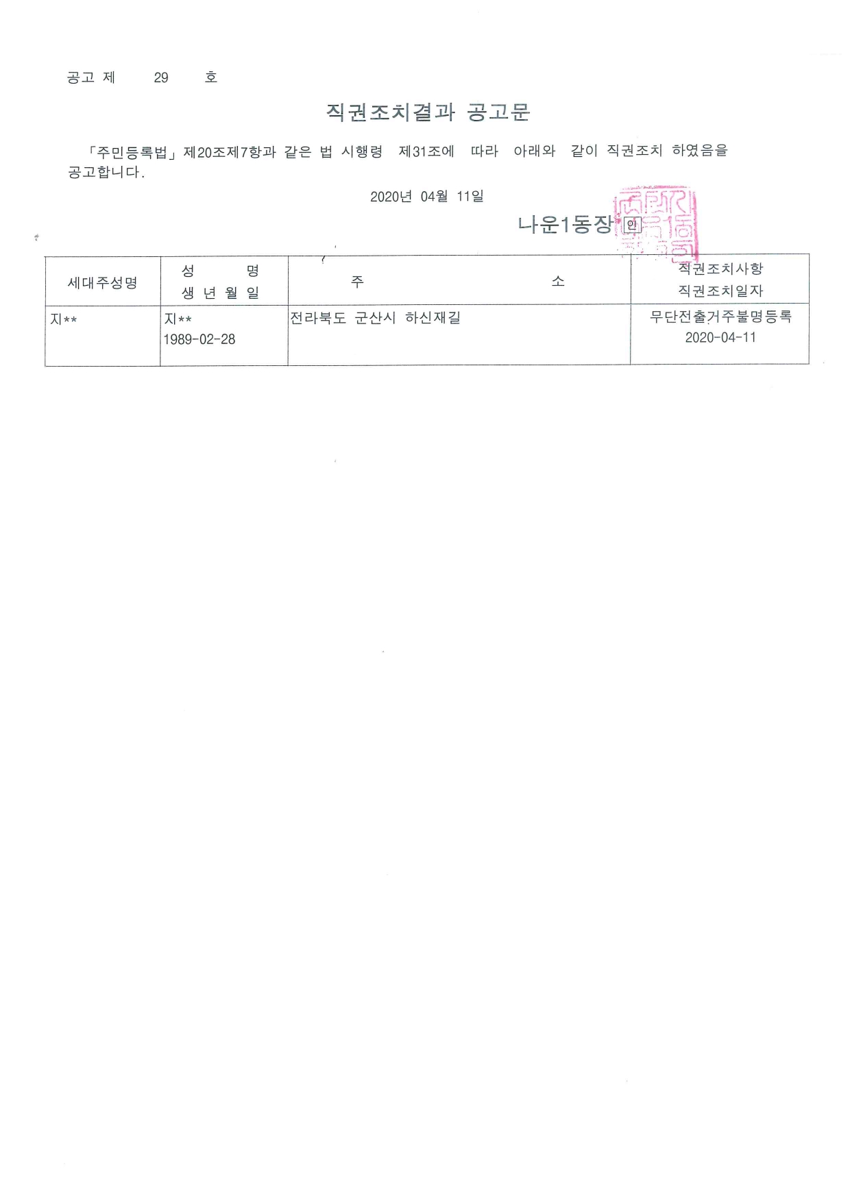| 47 | 주민등록 의무이행 위반자 최고공고 |