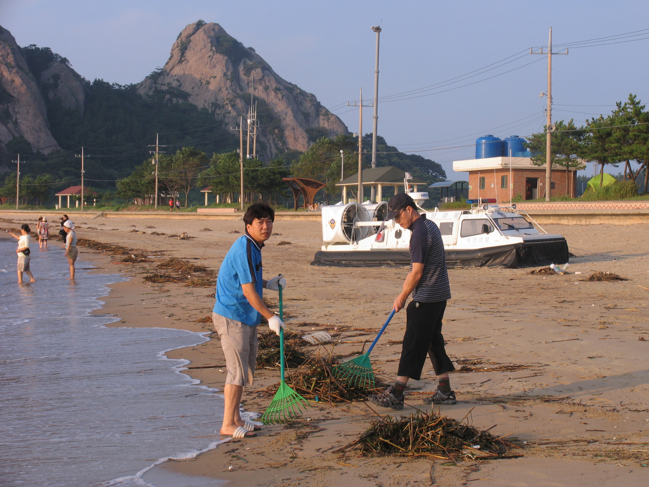 오늘 선유도 해수욕장 정화 작업을 하는날이다.. 막상 청소를 하려고하니 명사십리 해수욕장 가득 밀려든 쓰레기를 바라보자니 한숨만 절로....(언제 다하나~.~) 그래도 청소를 한다고하니 바쁜와중에도 내일처럼 하나 둘 모여드는 회원들에게 감사 할 뿐이다... 청소를 하다보니 낯선사람 둘이서 열심히 청소를 하고있길래. 다가가서 물어보니 군산시청 직원인데. 관광안내소에 근무 나오신분들이라고 한다... 쓰레기가 너무 많아 힘드니까 그만하고 들어가라고 하니까? 진흥회원분들이 이렇게 고생하는데 시 공무원으로써 어떻게 가만히 있을수 있냐면서 5시부터 시작한 작업이 해가지고 어둠이 내려 캄캄한밤이 되어서야 끝날때까지(9시반) 최선을 다해 주었다.. 오늘 버릴 쓰레기양은 자그만치 12트럭분량이었으니 얼마나 많은 량인가,, 처음부터끝까지 최선을 다해주신 두분을 칭찬하고싶습니다.. 칭찬합시다에는 사진을 올릴수없어 이곳에 두분 사진을 올립니다...이런분들이 있기에 새만금 관광중심도시의 뜻을 이룰수 있다고 생각합니다....