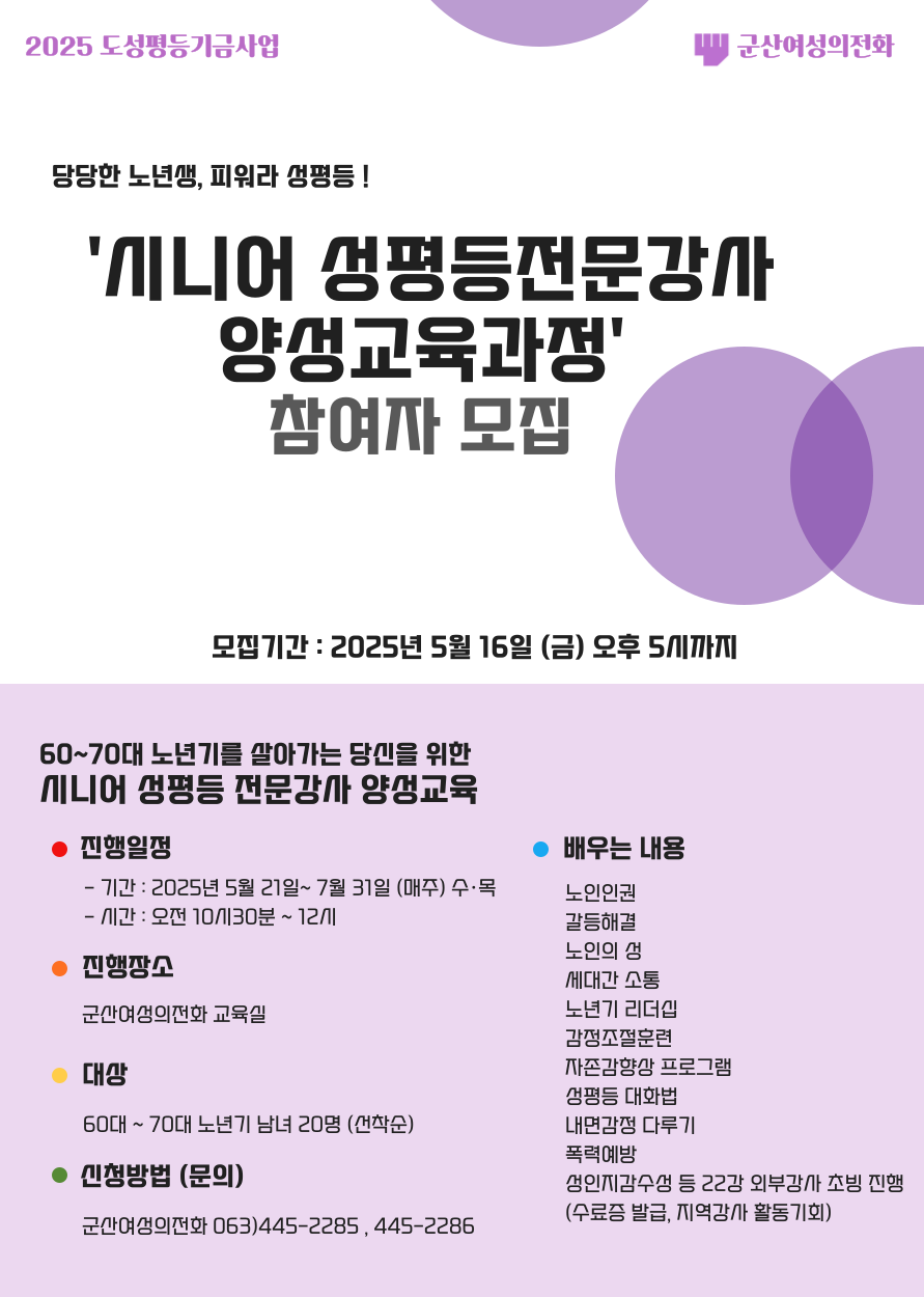 '시니어 성평등전문강사 양성교육과정'을 진행하고자 합니다.