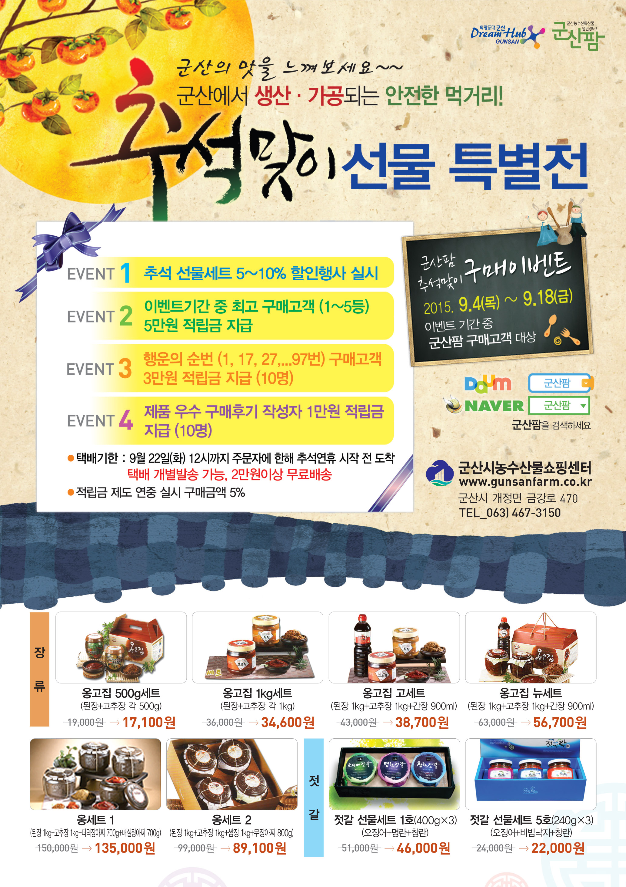 민족 대 명절인 추석을 맞이하여 군산시 우수 농수특산물 온라인 쇼핑몰
