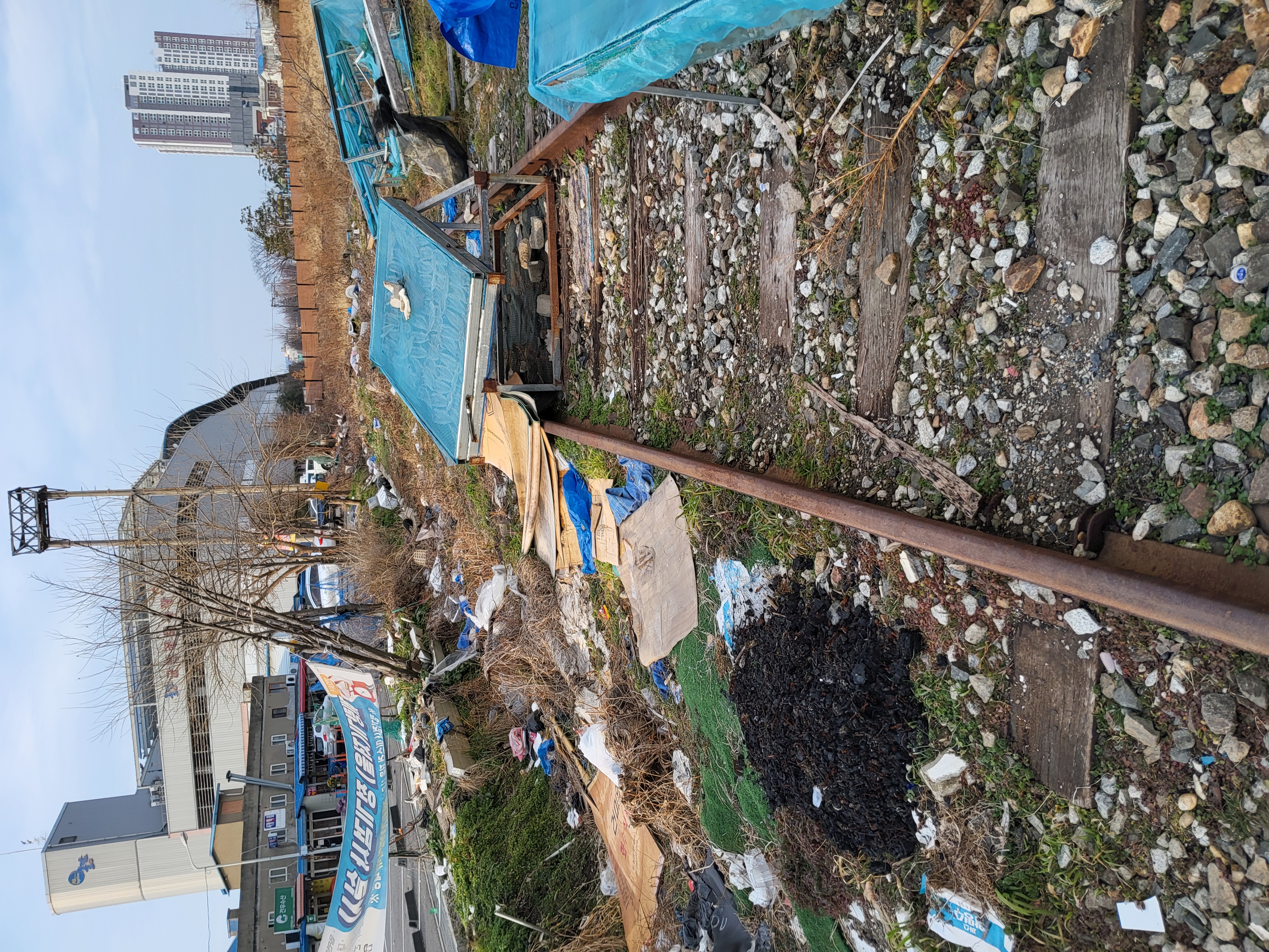 공설시장 주차장 옆 철도부지 쓰레기가 점점늘어나고 있습니다 주차장 옆 울타리 쳐주시고 쓰레기 속히 처리해주기길 부탁합니다