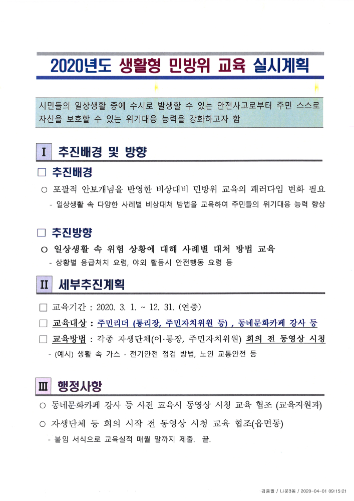 | 76 | 2020년도 생활형 민방위 교육 실시 계획 |