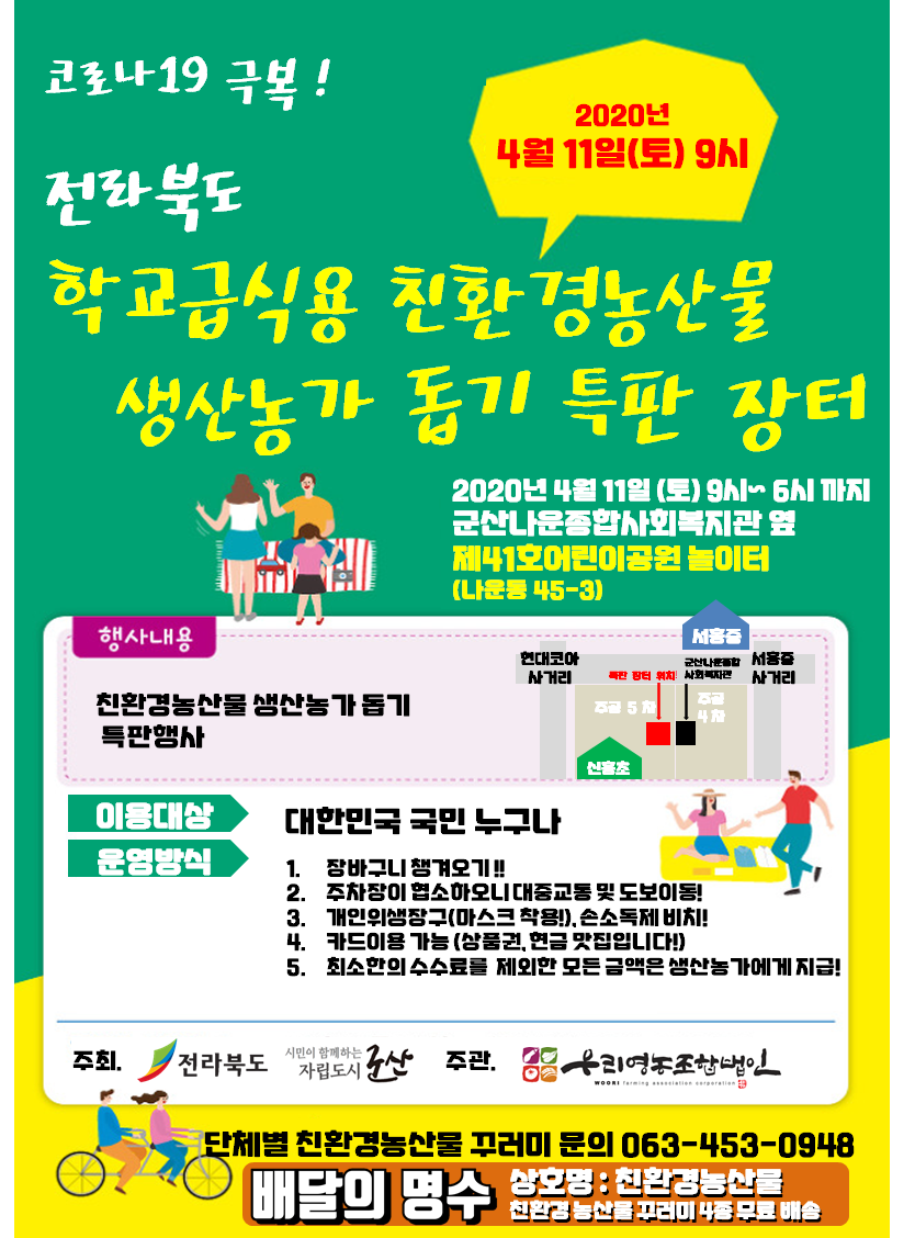 코로나19로 개학이 연기됨에 따라 학교급식용 친환경농산물 공급 차질로 어려움을 겪고 있는 농가를 돕기 위한