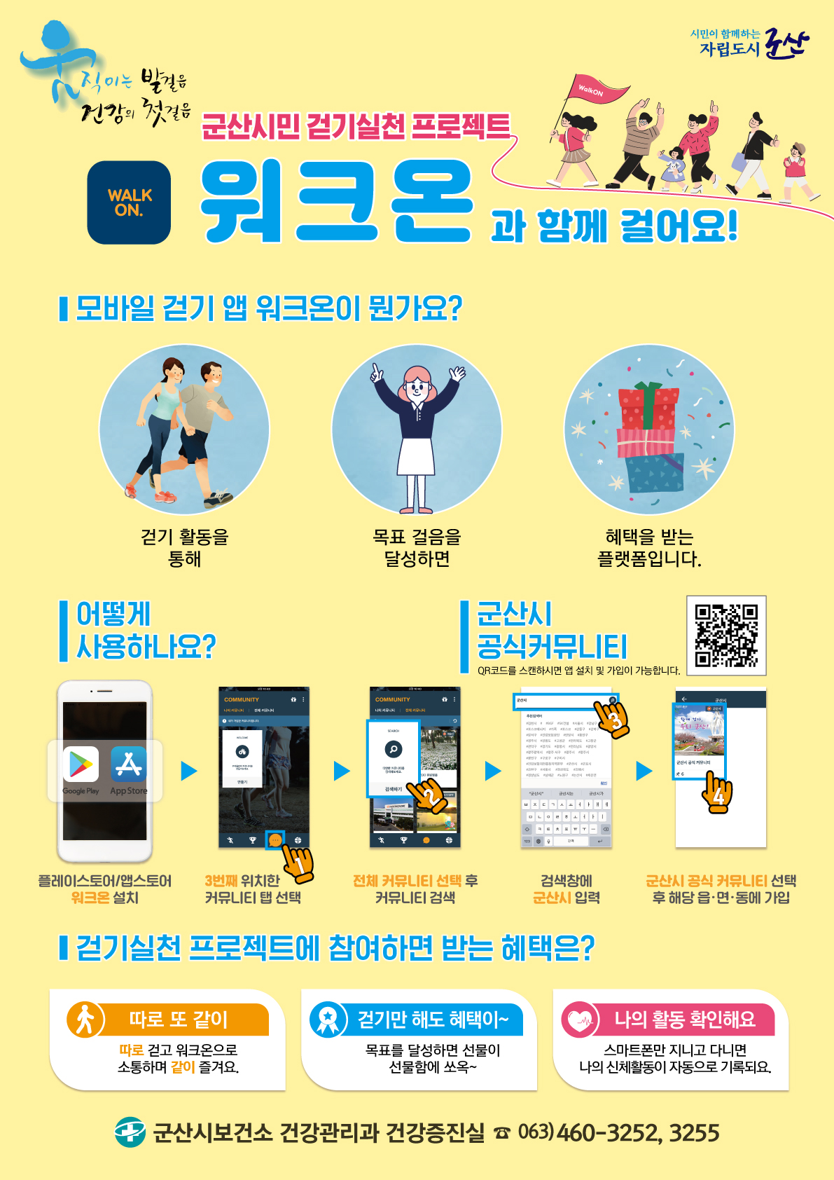 군산시 보건소에서 최근 장기화 되고 있는 코로나-19 바이러스 감염 예방 및 일상 속 걷기실천