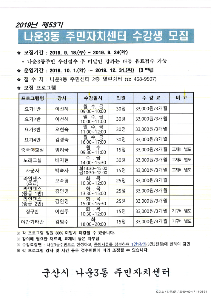 군산시청 에서 제작한 "자치센터 프로그램"저작물은