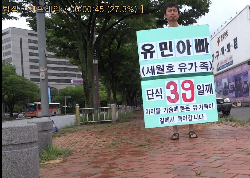 다. 자식을 가슴에 묻은 아버지가 진실규명을 위한 단식을 하는 사실을 알리는 피켓을 든