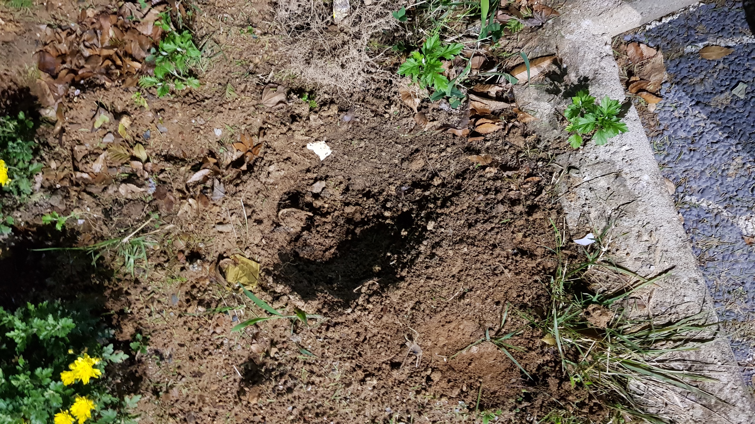 멸치전 주공5단지 아파트 내 공원에 시에서 심어진 꽃을 뽀고가는