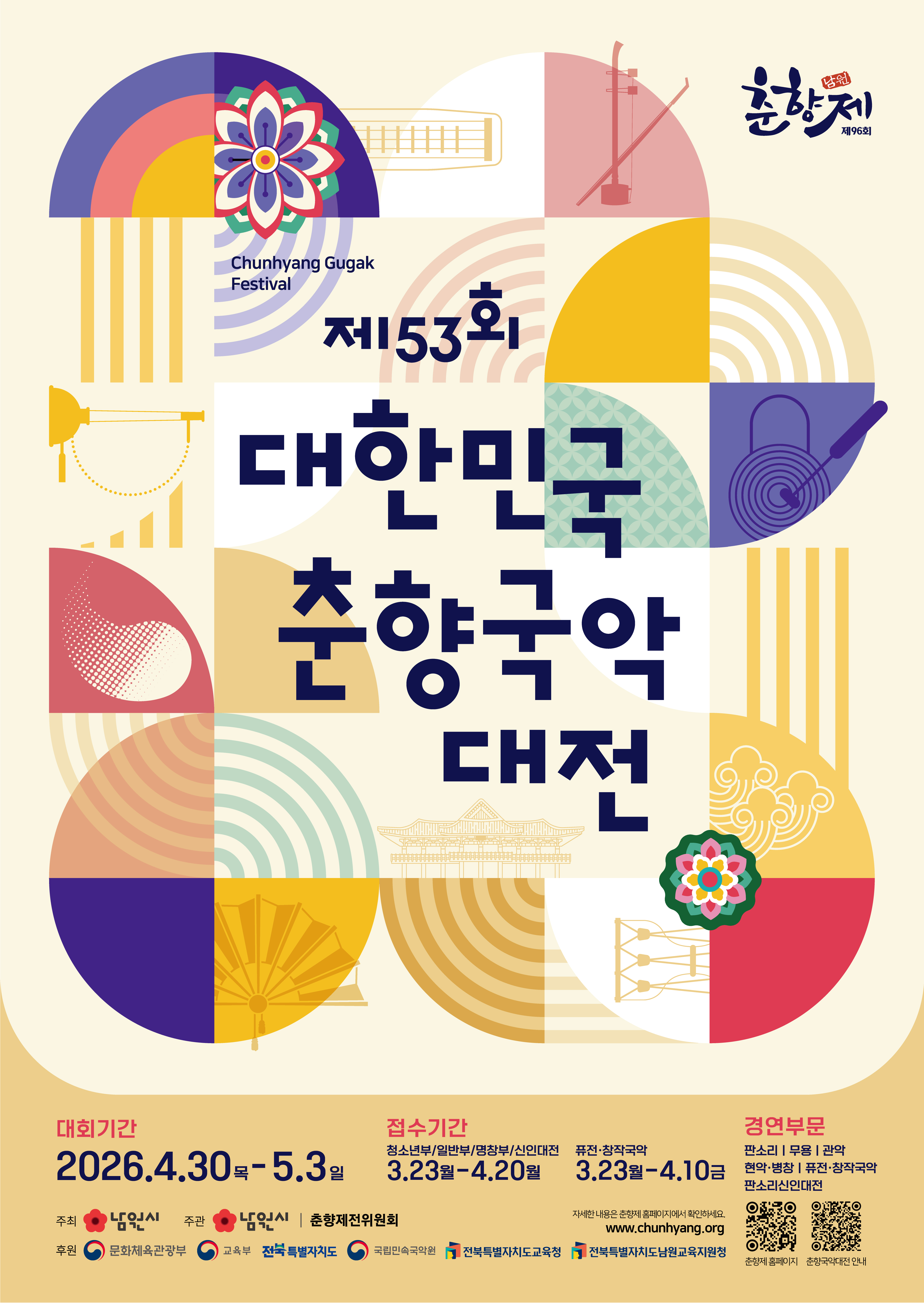 국악의 아름다움을 직접 경험하고 싶은분들, 실력을 발휘하고 싶은 국악인 여러분들! 제53회 대한민국춘향국악대전에서 여러분의 열정을 마음껏 펼쳐보세요!