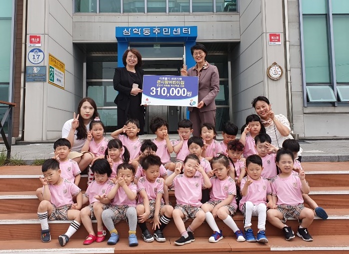 큰사랑어린이집 어린이들이 아나바다 시장에서 수익한 금액 31만원을 삼학동의 어려운 분들을 위해 사용해달라며 성금을 기탁하였습니다.