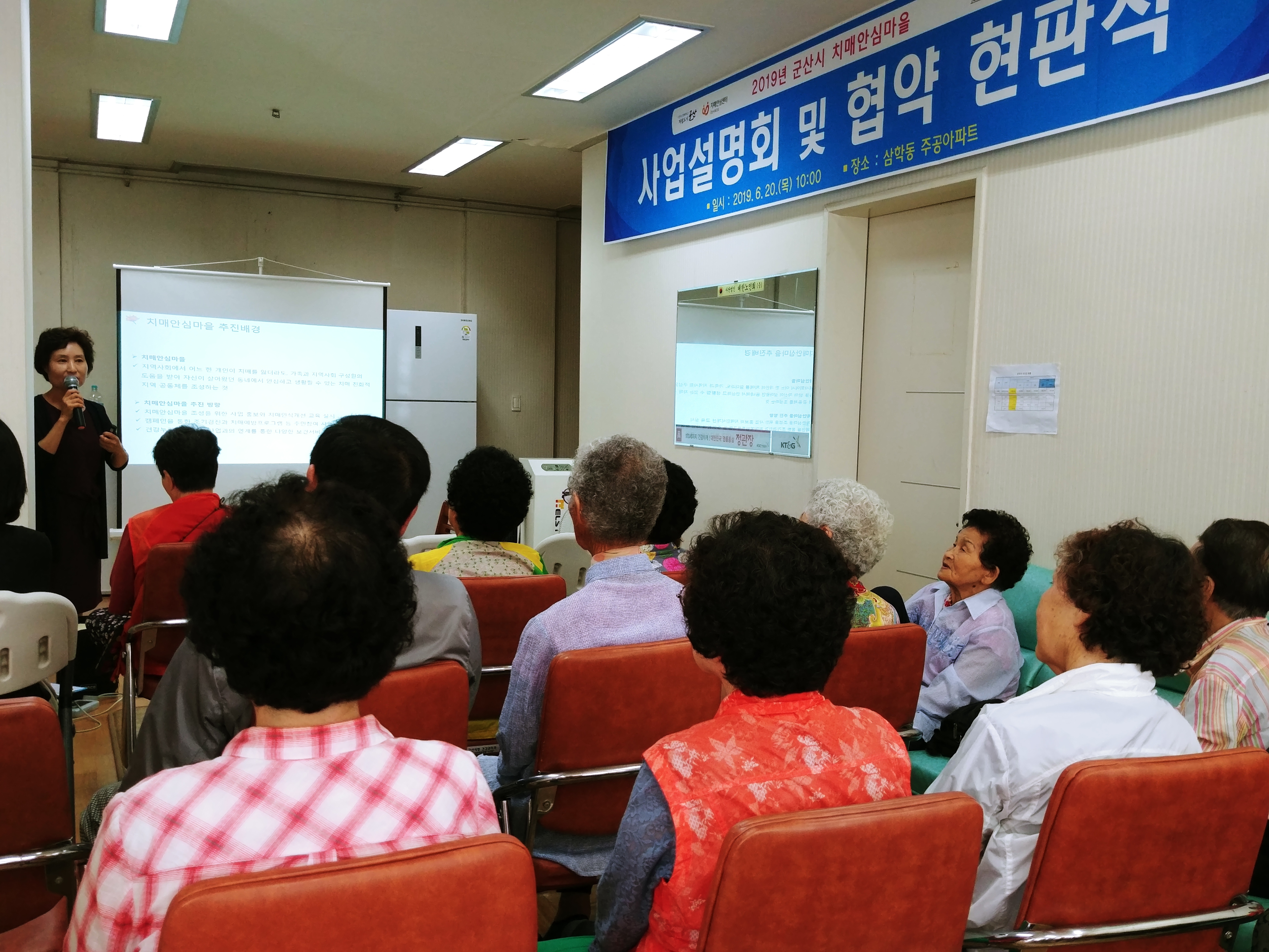 2019년도에는 우리동의 삼학주공아파트가 선정되어 6월 20일 현판식을 갖고 금년 한해동안 정기적으로 매주 수요일에 치매 조기검진과 치매인식개선교육등 주민들을 위한 각종 프로그램을 진행할 계획입니다.