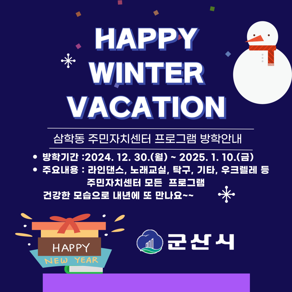 | 103 | ★삼학동 주민자치센터프로그램 겨울방학 안내~~★ |