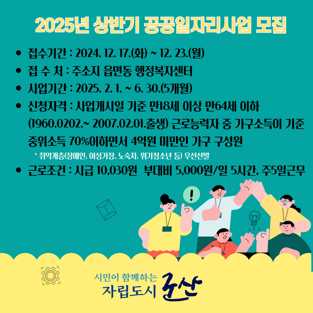 | 102 | 2025년 상반기 공공일자리사업 참여자모집 |