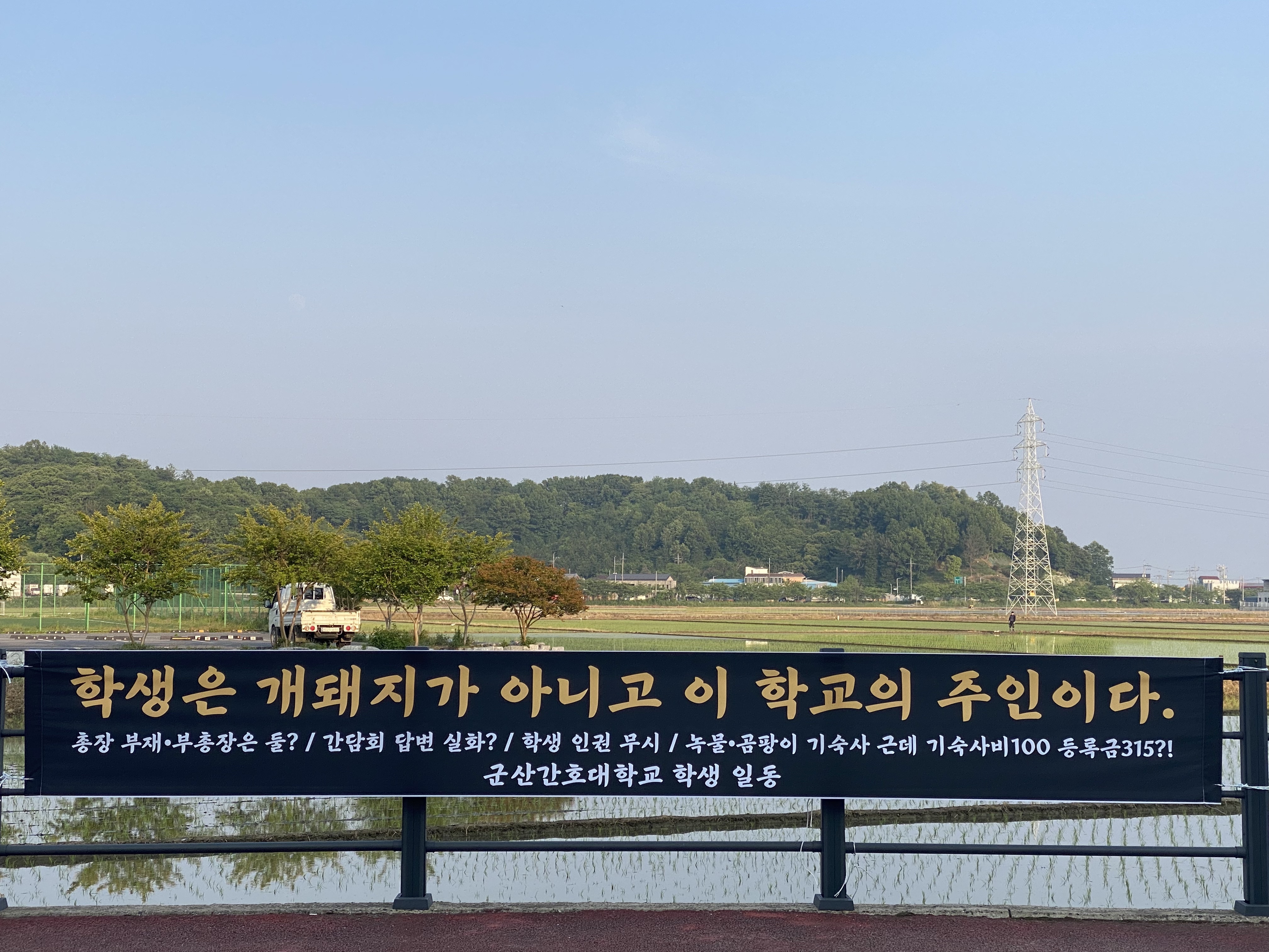 표현의 자유가 보장된 군산간호대학교 학생들이 현수막을 학교 내부에 걸어야 하는데, 학교 내부에는 걸지 못하고, 학교 밖에 걸 수 밖에 없는 이유는 무엇일까요?