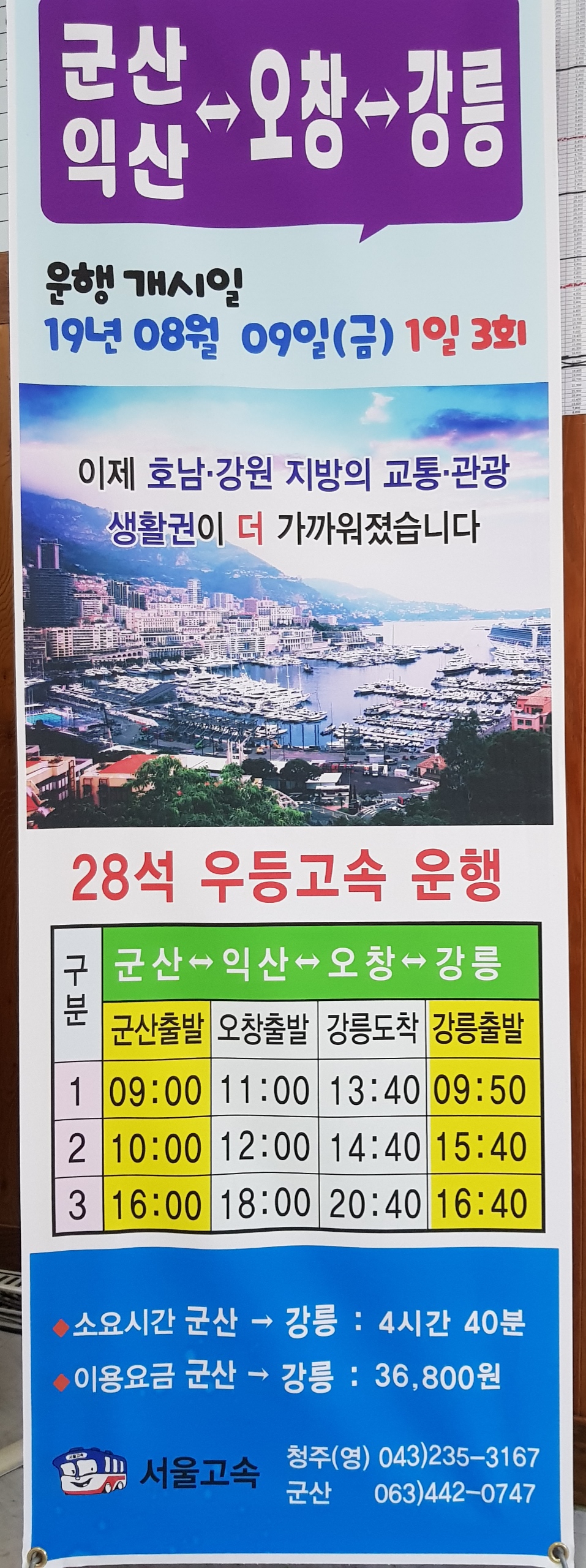 군산에서 강릉까지 개통되여 있습니다
