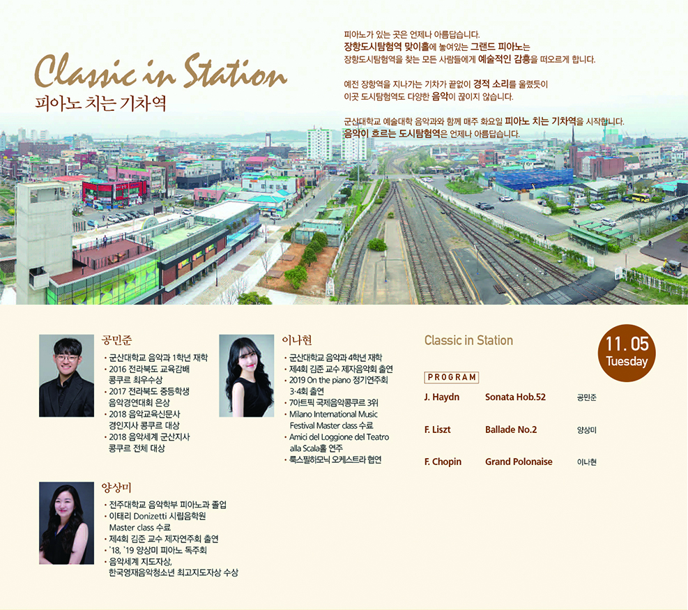 군산대학교 예술대학 음악과와 함께 매주 화요일 <피아노 치는 기차역>을 시작합니다.