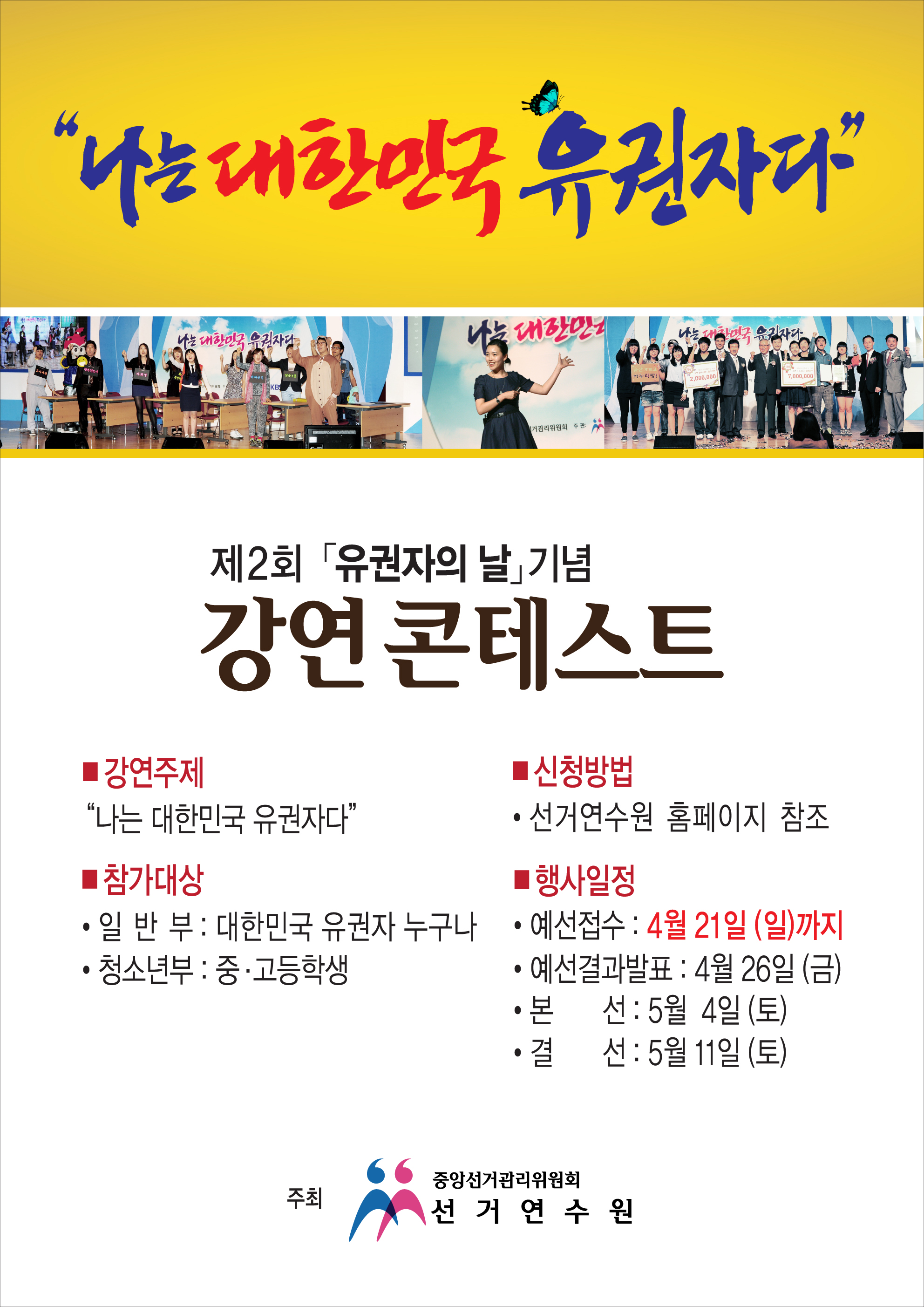 제 2회 유권자의 날을 기념해 강연콘테스트가 개최됩니다!