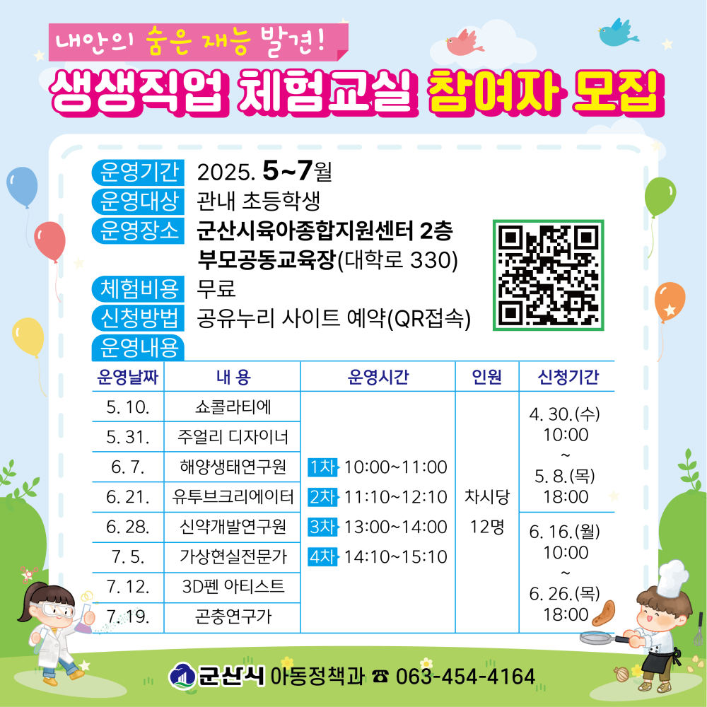 6192 생생직업 체험교실 참여자 모집 다운받기 아동정책과 25.04.29 6584