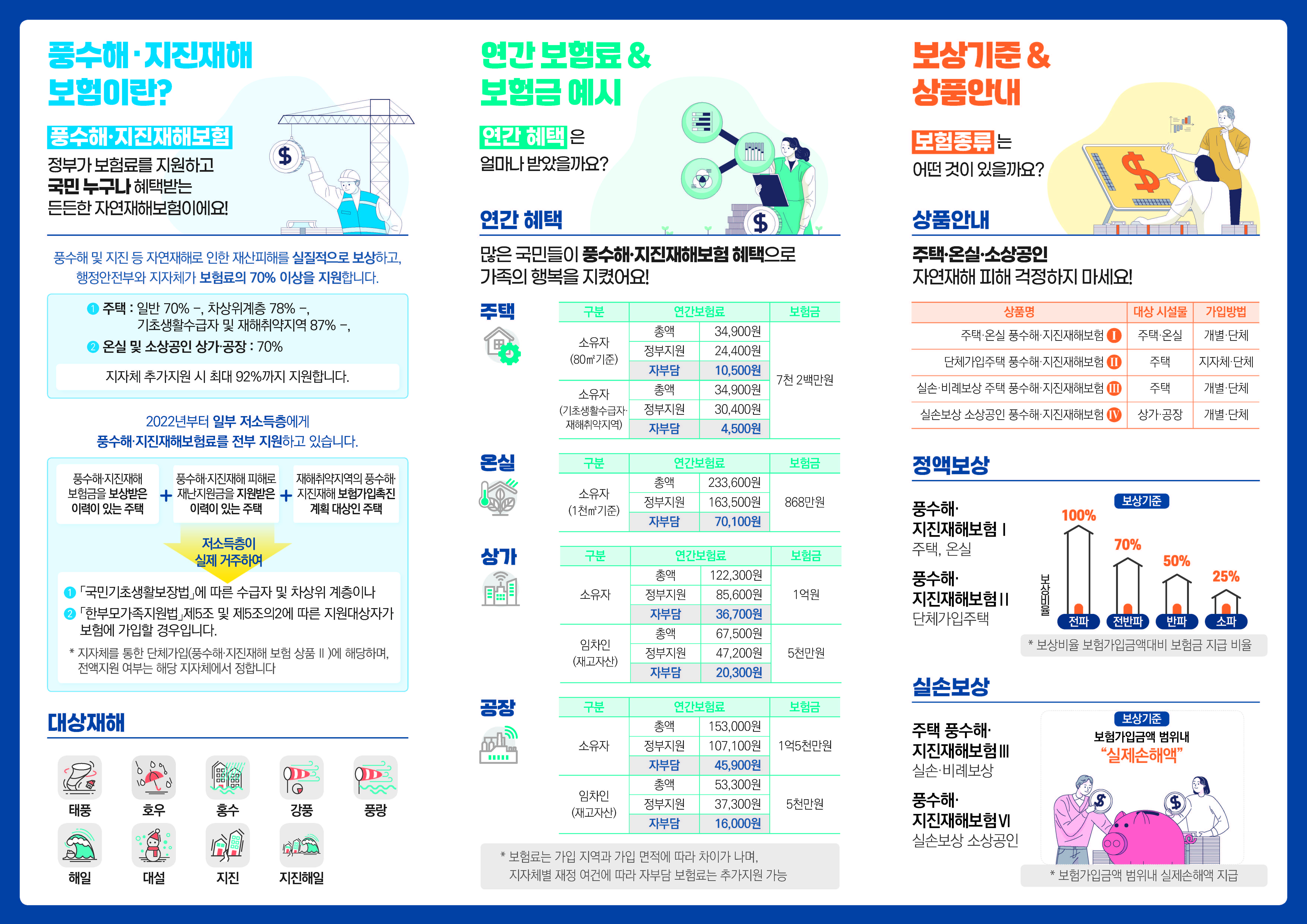 태풍, 홍수, 지진 등 자연재해 보장을 위한