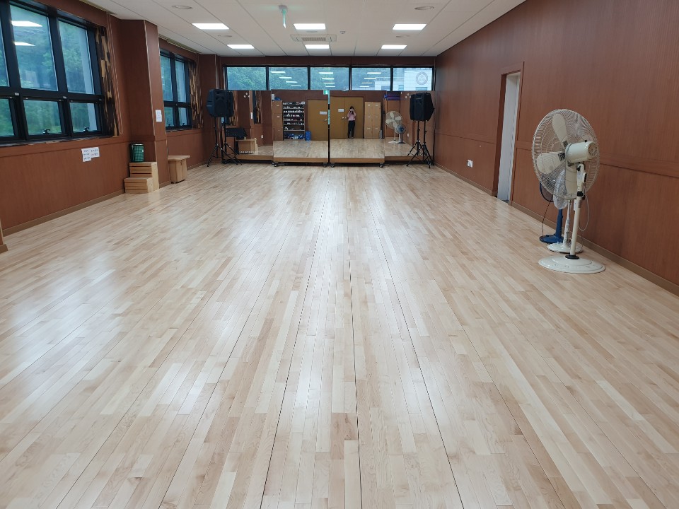 주민자치프로그램실 바닥을 충격완화를 위한 마룻바닥으로 교체 공사 하였습니다.