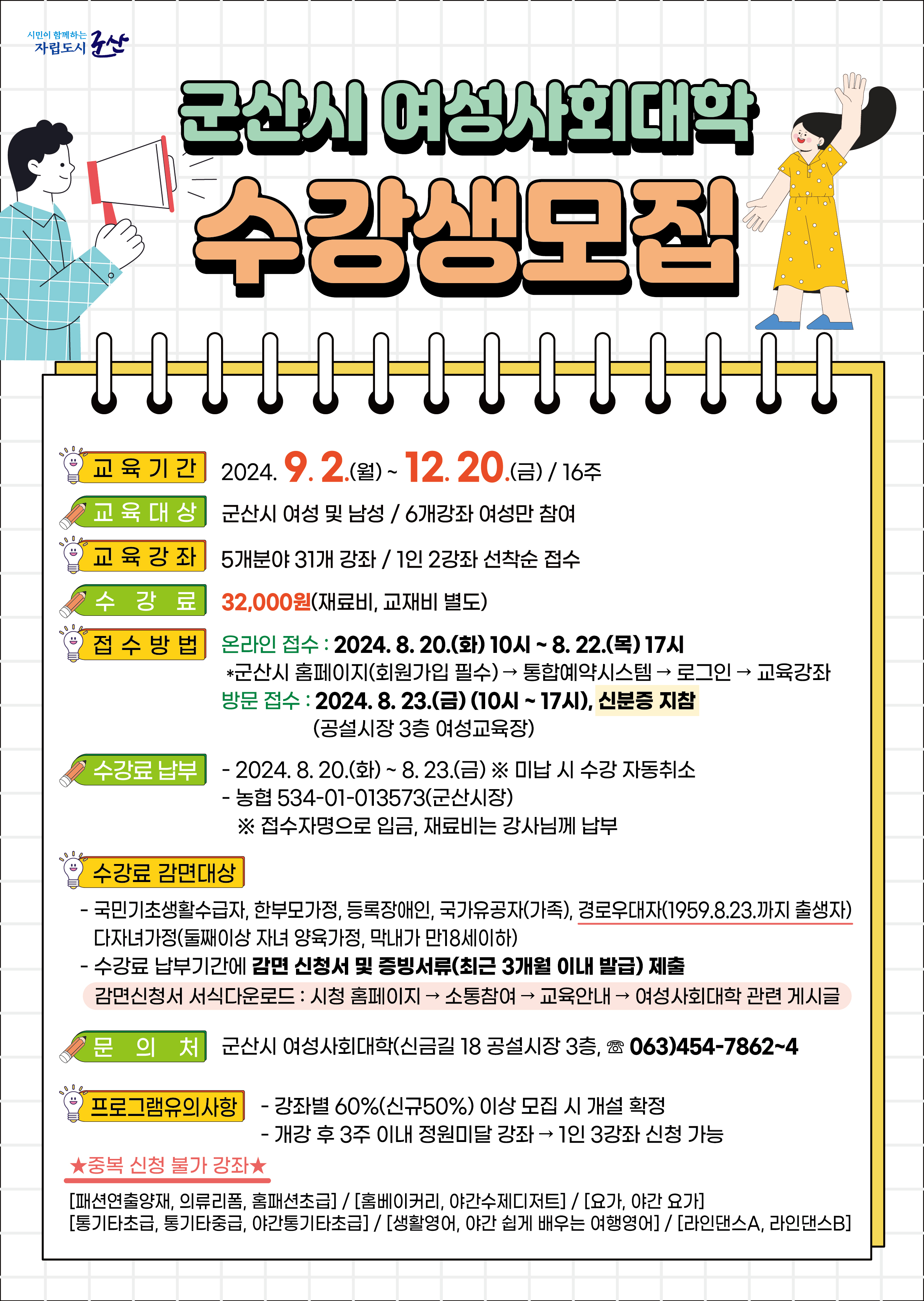 2024년 하반기 여성사회대학 프로그램 수강생을 모집합니다.
