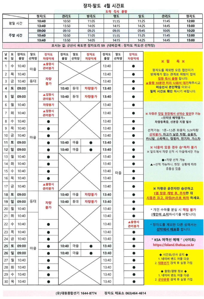 | 808 | 장자도 | 2026 | 4 | 장자도 4월 여객선 시간표 안내 |